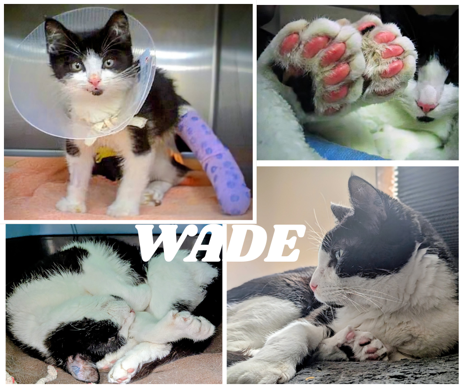Born in June 2009, Wade was found at approx 7 weeks old with a broken leg and multiple wounds. Being an RVT, I took him in, got him the surgery he needed, and nursed him back to health. From that moment on, he decided the world was full of friends he hadn’t met yet.